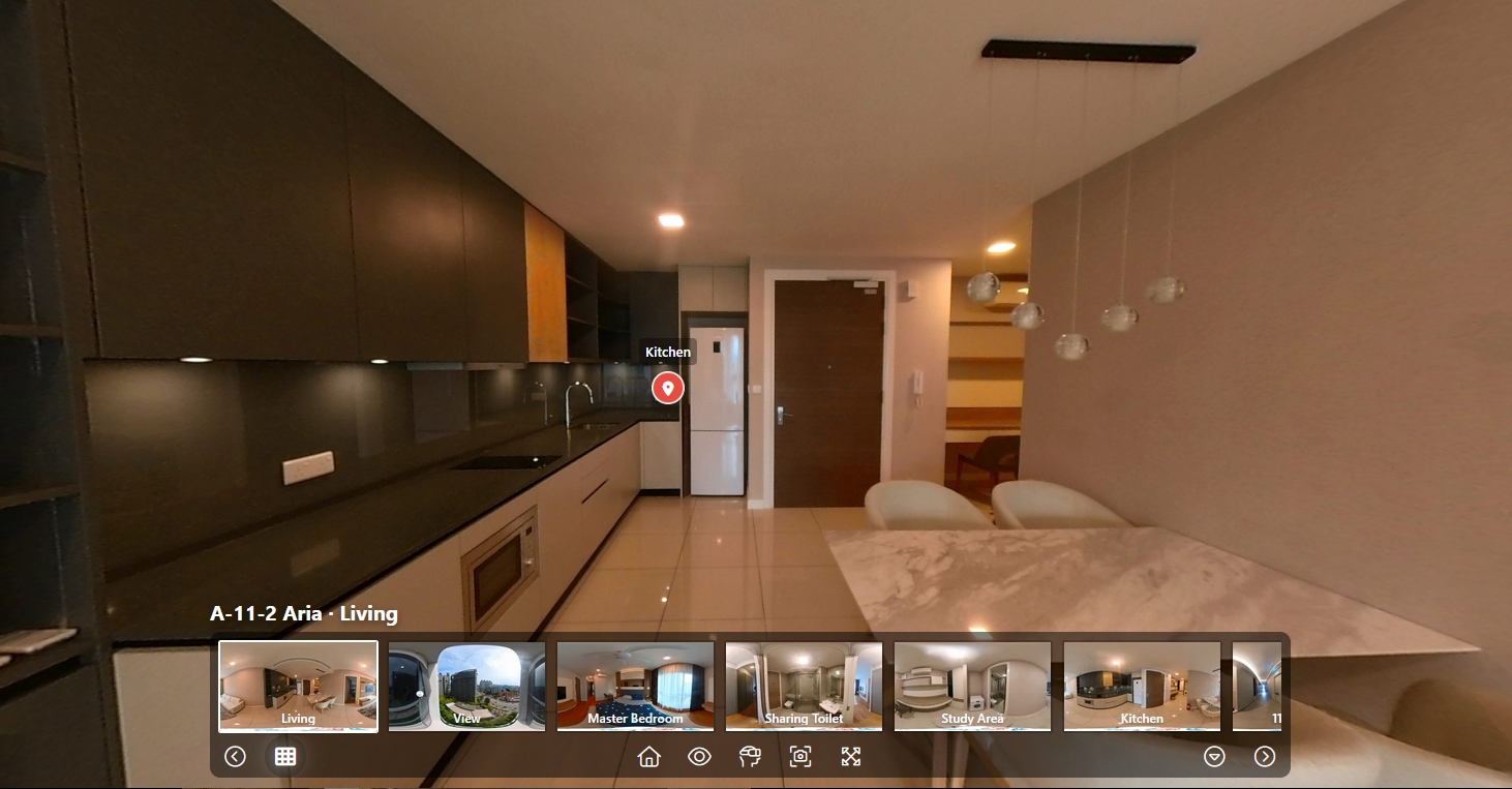 • Delivering an Authentic Immersive Experience: Through a Real Estate 360 Virtual Tour, prospective buyers can “Enter” and perceive the layout, flow, and atmosphere of a property in a manner that no photograph or video can duplicate. They have the ability to zoom, rotate 360 degrees, and navigate through areas at their own speed, acquiring a comprehensive and precise visualization. A 3D property tour enables you to observe the panoramic view from above, explore the premises, and investigate each room within the model house, all from your device.